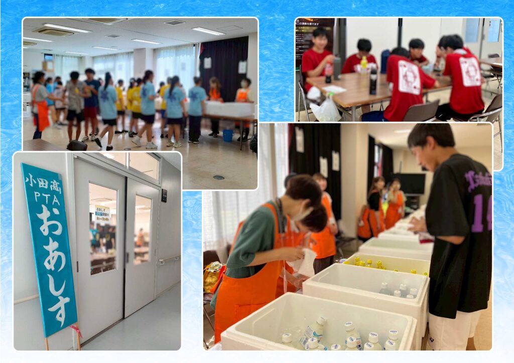 「お疲れさま!」「頑張ってね!」と声をかけながら冷たい飲み物を手渡すと、生徒たちも笑顔で応えてくれました。